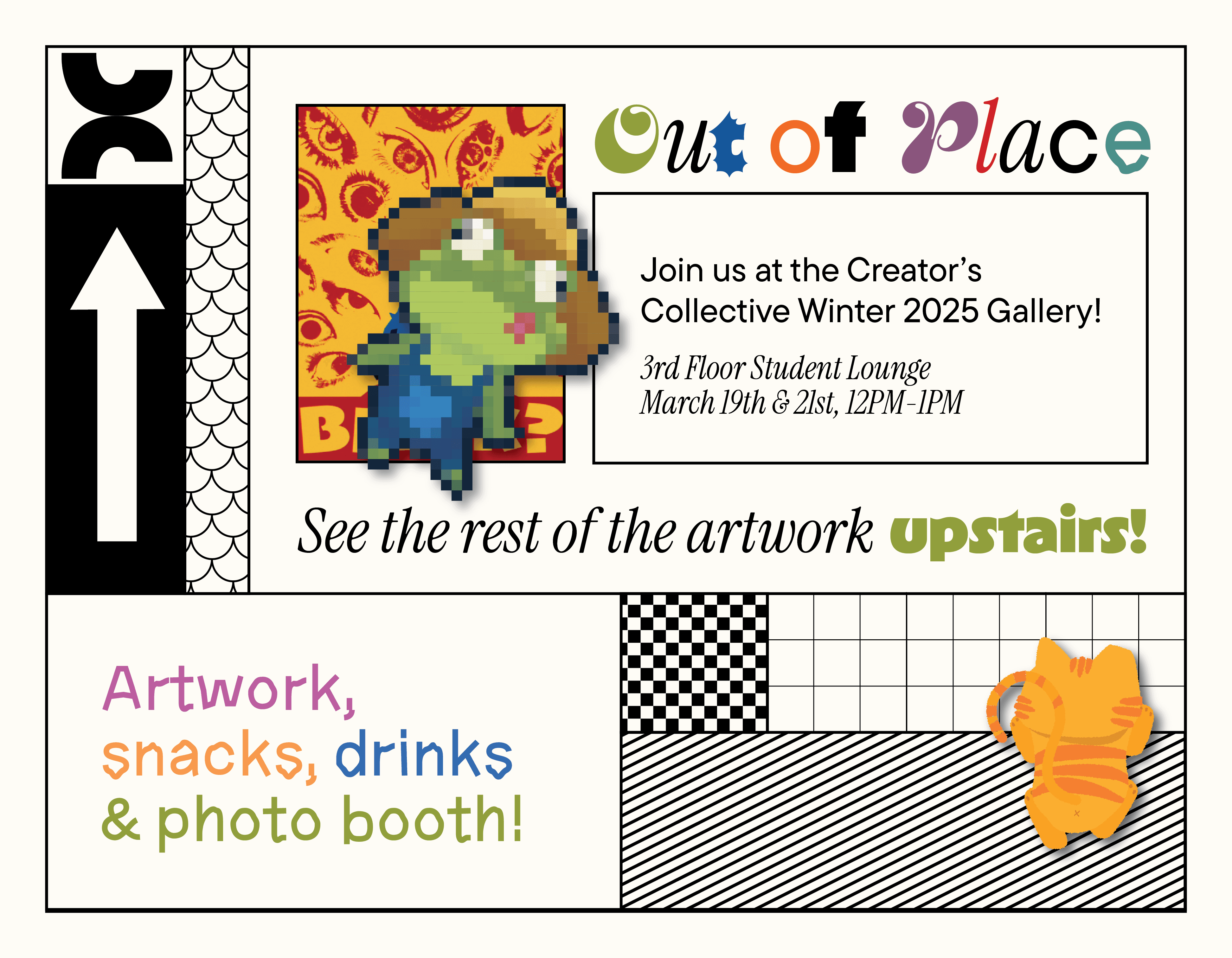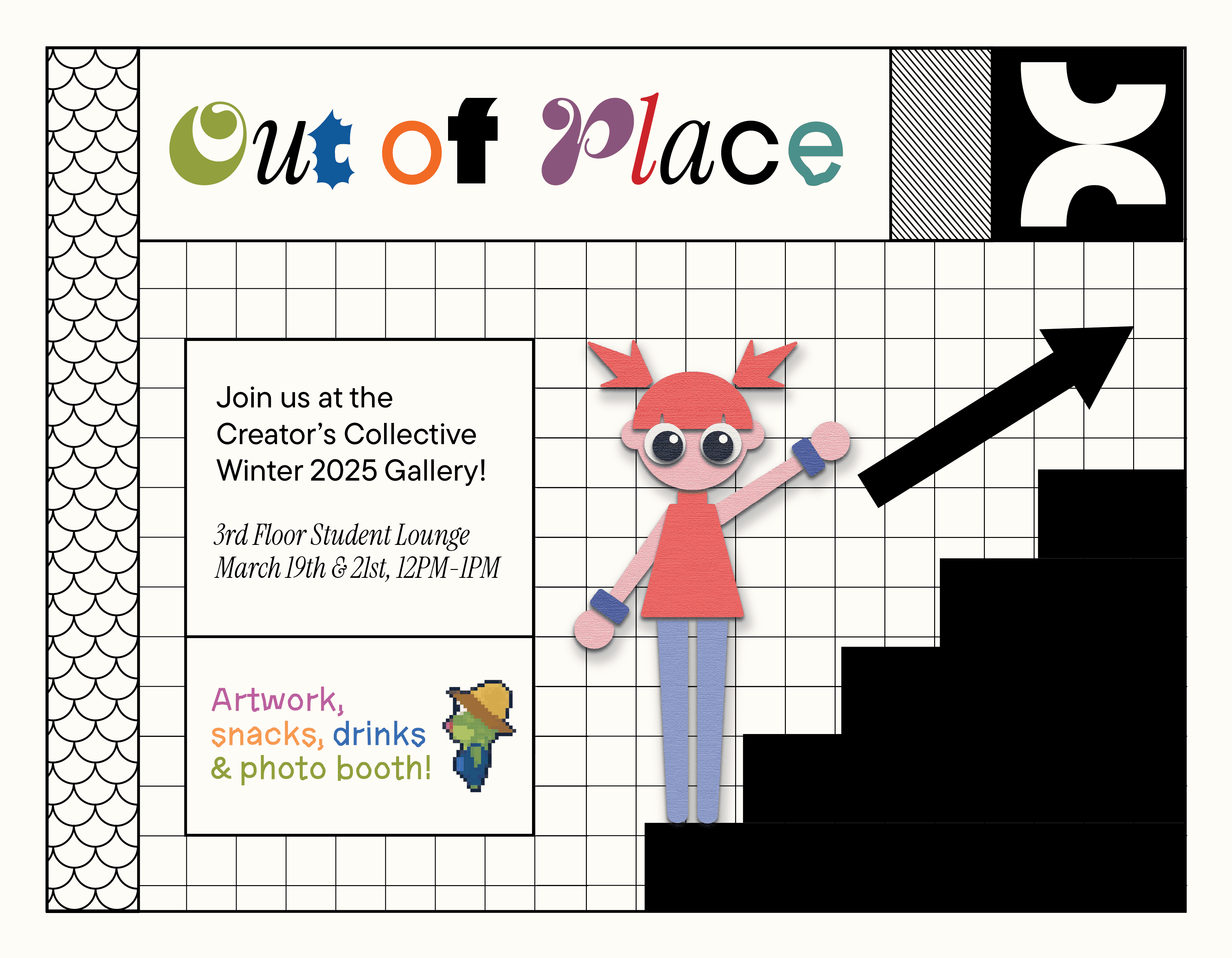 "Out of Place" was the theme for Creator Collective's Winter 2025 term! As a member of both the design and edition team, I was able to help out with page layout designs as well as Instagram posts!
